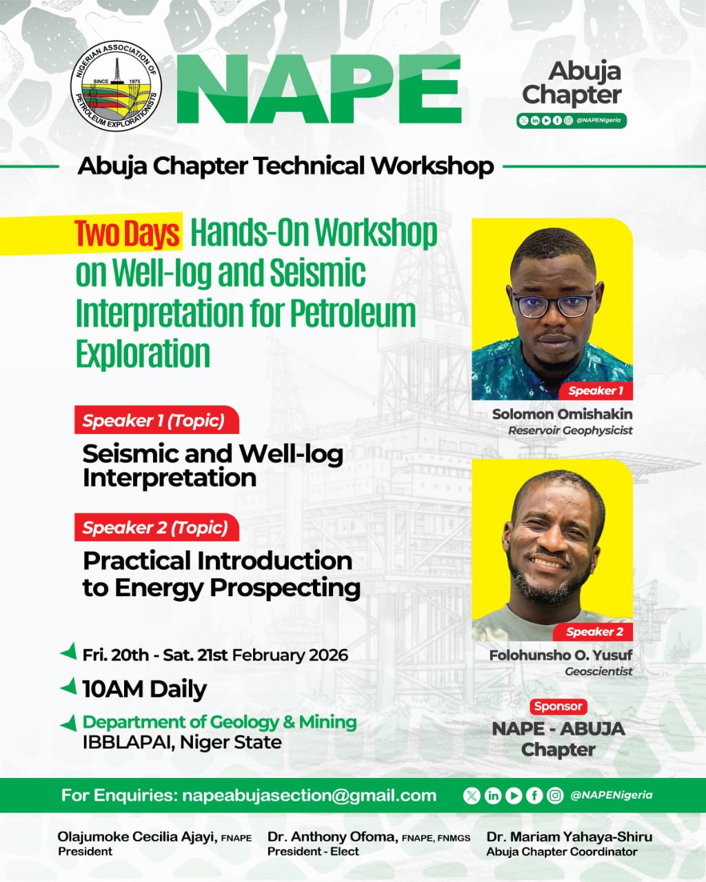 The NAPE Abuja Chapter will host a two-day hands-on technical workshop focused on applied exploration workflows.