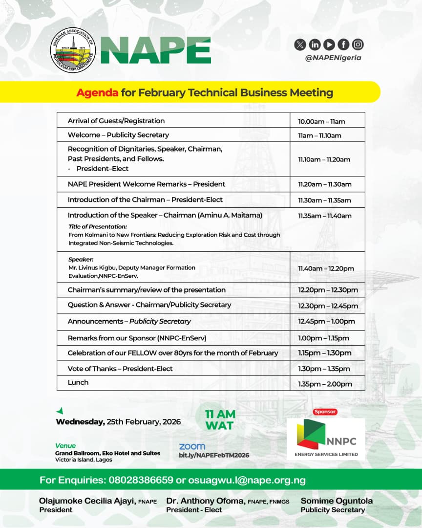 NAPE February 2026 Technical and Business Meeting – 25 February 2026