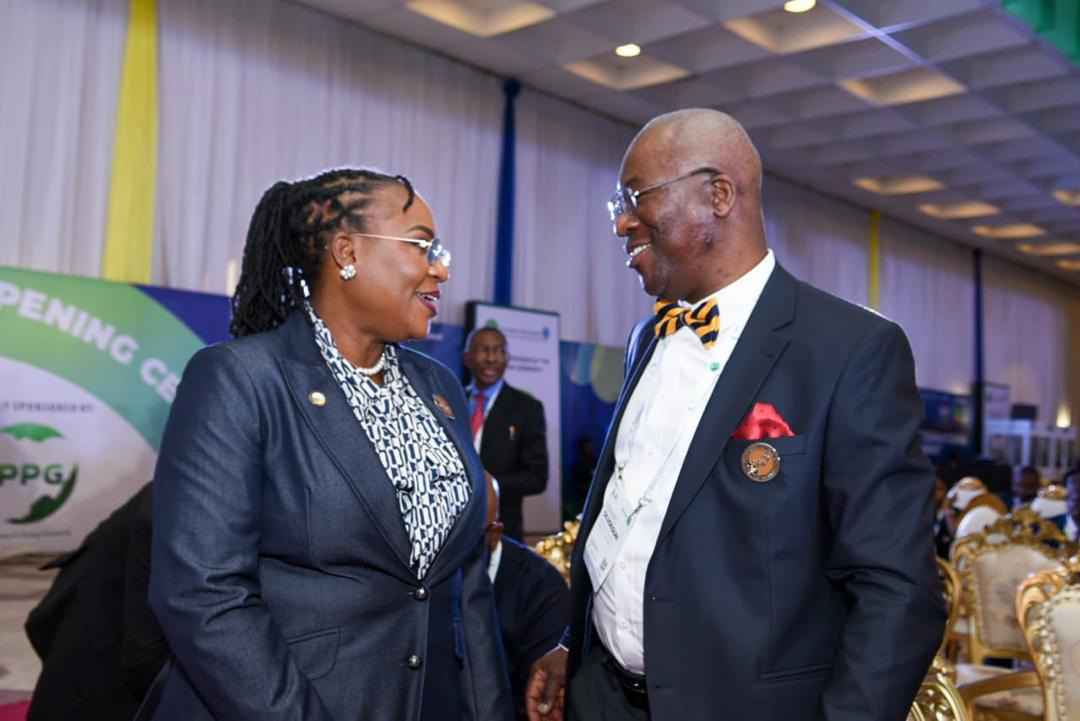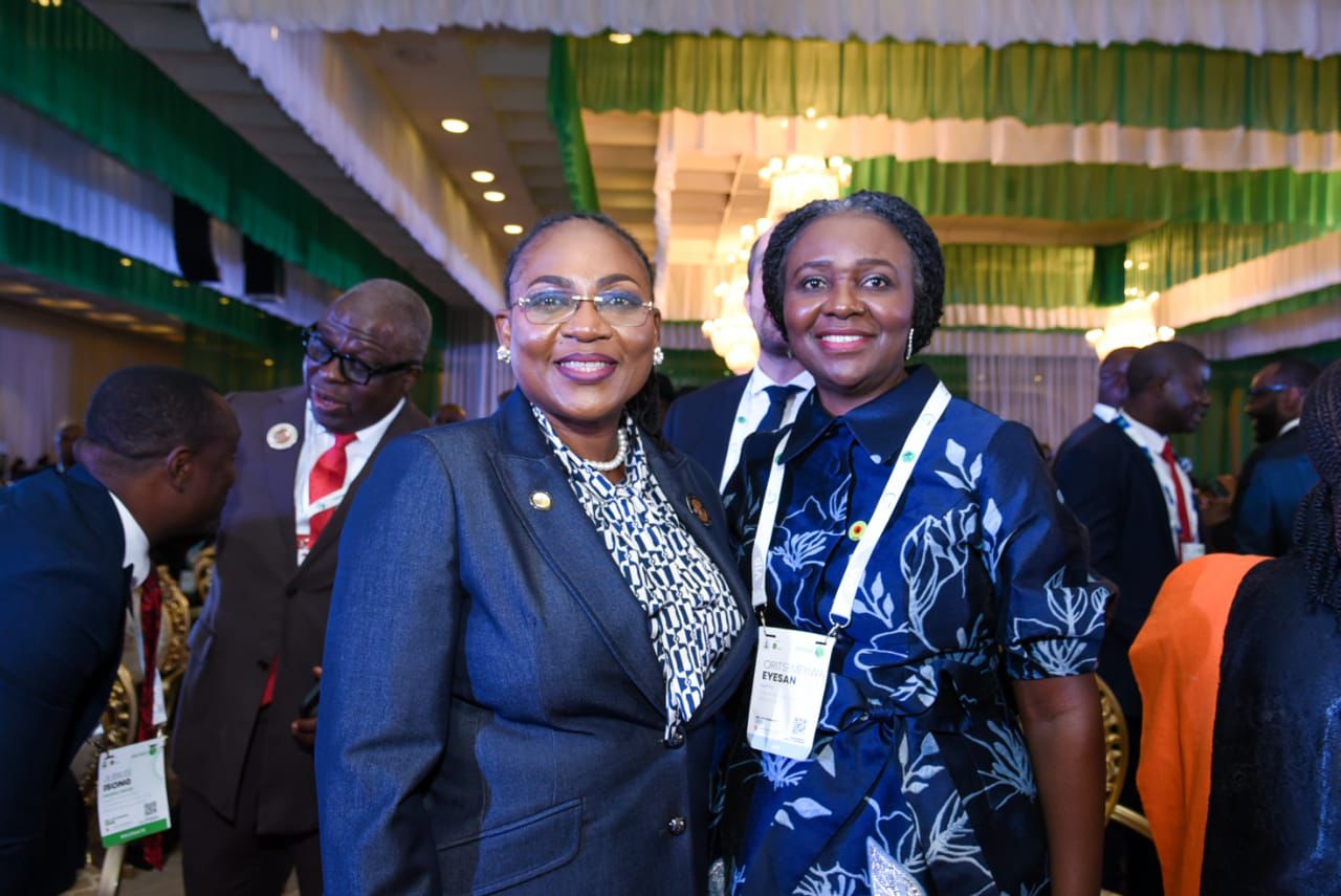 NAPE President, Olajumoke Cecilia Ajayi, FNAPE, pictured with Dr. Omar Farouk Ibrahim, Secretary General of the African Petroleum Producers Organization(APPO) at the Day Two Opening Ceremony of NIES 2026 held at the Presidential Villa, Abuja.
