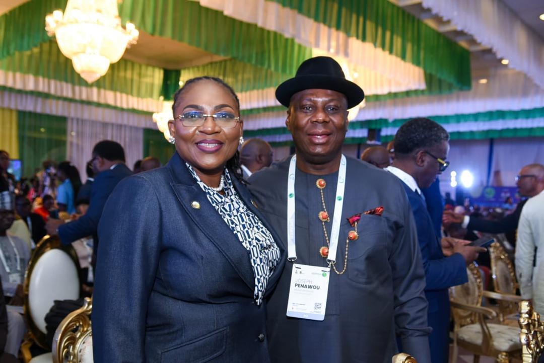 NAPE President, Olajumoke Cecilia Ajayi, FNAPE, pictured with, Joseph Penawou, Chairman/CEO of Nigdel United Oil Company Limited during the Opening Ceremony of NIES 2026 held at the Presidential Villa, Abuja.