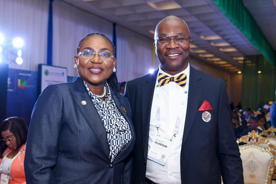 NAPE President, Olajumoke Cecilia Ajayi, FNAPE, pictured with Mr Banwo Olusegun, Executive Vice President Finance (CFO) of Renaissance Africa Energy Company Limited during the Opening Ceremony of NIES 2026 held at the Presidential Villa, Abuja.