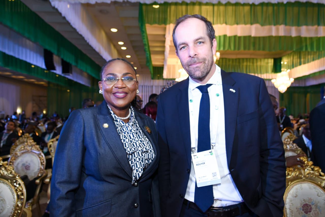 NAPE President, Olajumoke Cecilia Ajayi, FNAPE, pictured with Mr Matthieu Bouyer, MD, Total Energies during the Opening Ceremony of NIES 2026 held at the Presidential Villa, Abuja.