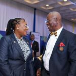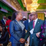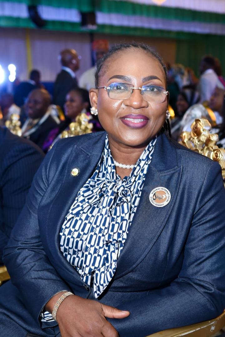 NAPE President, Olajumoke Cecilia Ajayi, FNAPE, engages with Mr Banwo Olusegun Executive Vice President, Finance (CFO) of Renaissance Africa Energy Company Limited during the NIES 2026 Opening Ceremony at the Presidential Villa, Abuja.